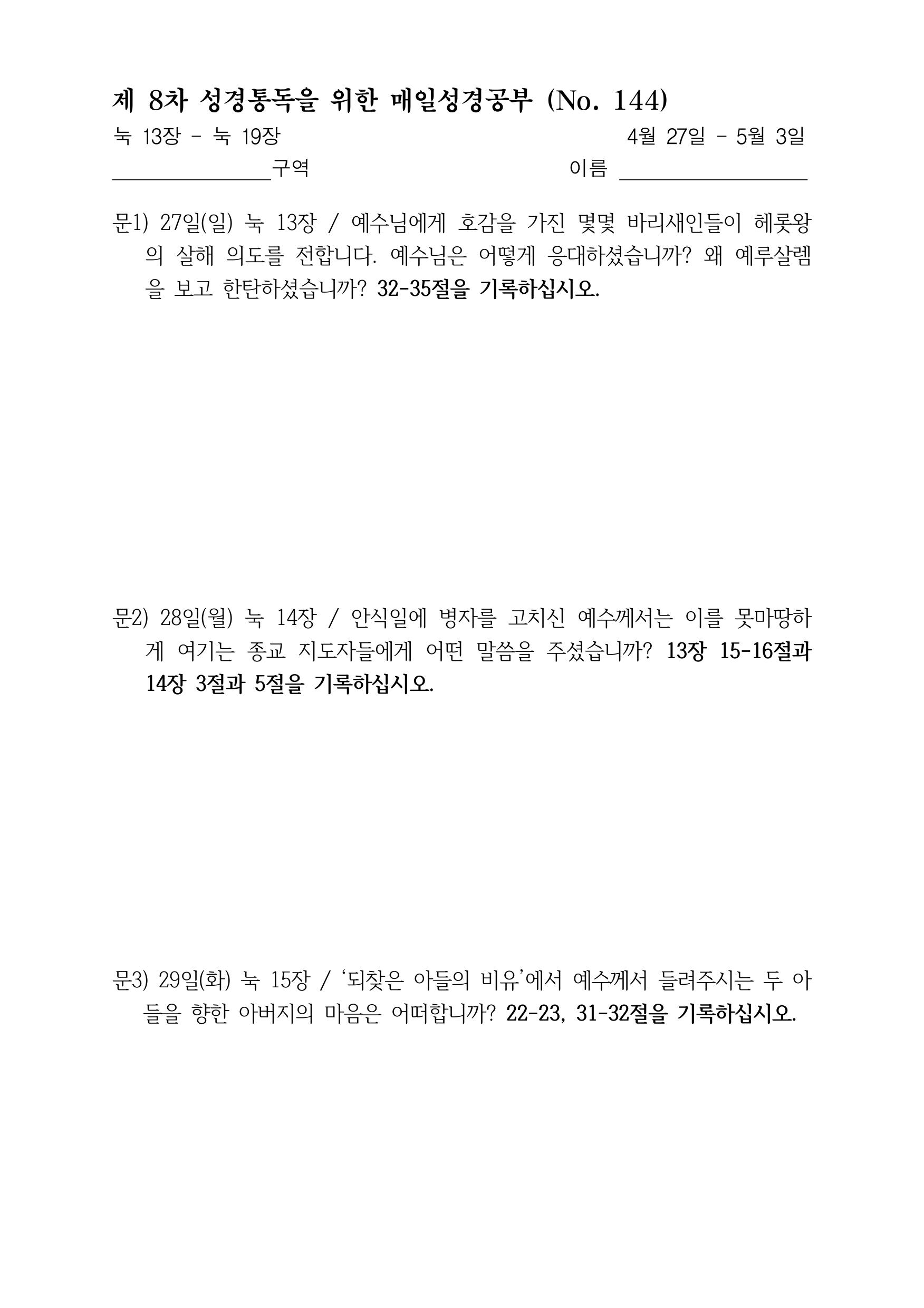 | 제 8차 성경통독을 위한 매일성경공부 (No.144) |