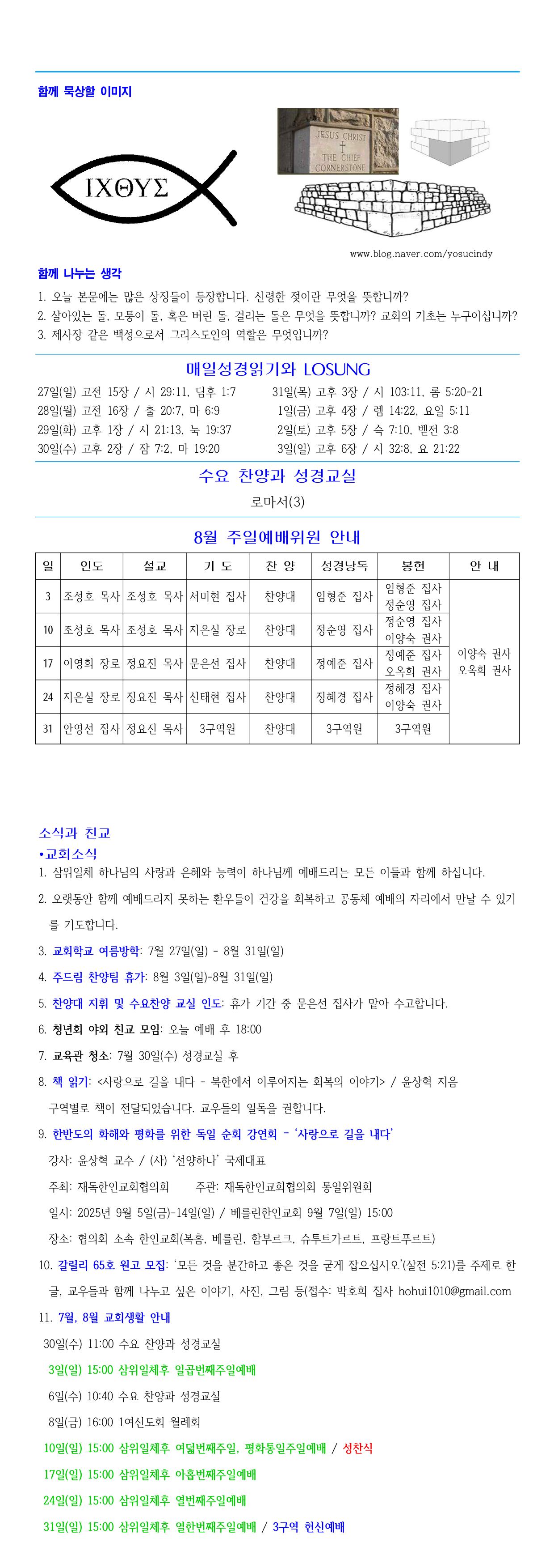 주보 글보기제목2025년 7월 27일 주보2025-07-28 18:26작성자bhanin 태그 목록 이전2025년 8월 3일 주보bhanin 2025-08-05-2025년 7월 27일 주보bhanin 2025-07-28다음2025년 7월 20일 주보bhanin 2025-07-22 Powered by MangBoard | 워드프레스 쇼핑몰 망보드 글을 공유하세요