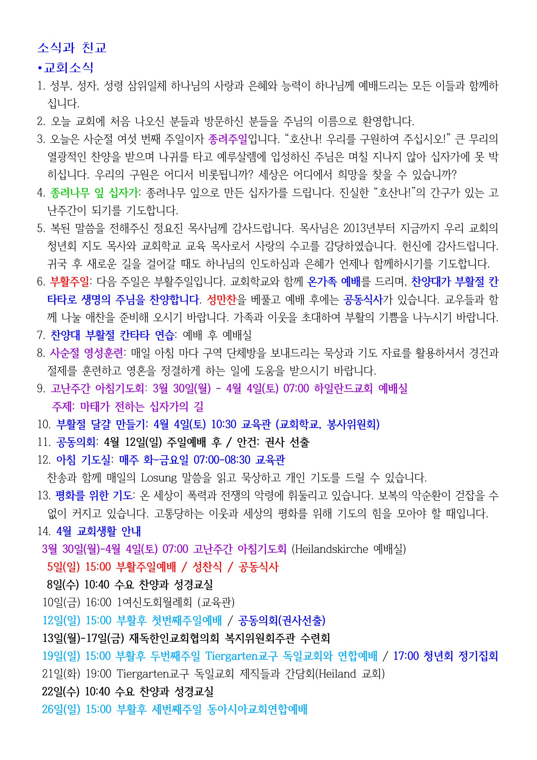 주보 글보기제목2026년 3월 29일 주보2026-04-01 12:48작성자bhanin 태그 목록 이전2026년 4월 5일 주보bhanin 2026-04-06-2026년 3월 29일 주보bhanin 2026-04-01다음2026년 3월 22일 주보bhanin 2026-03-22 Powered by MangBoard | 워드프레스 쇼핑몰 망보드 글을 공유하세요
