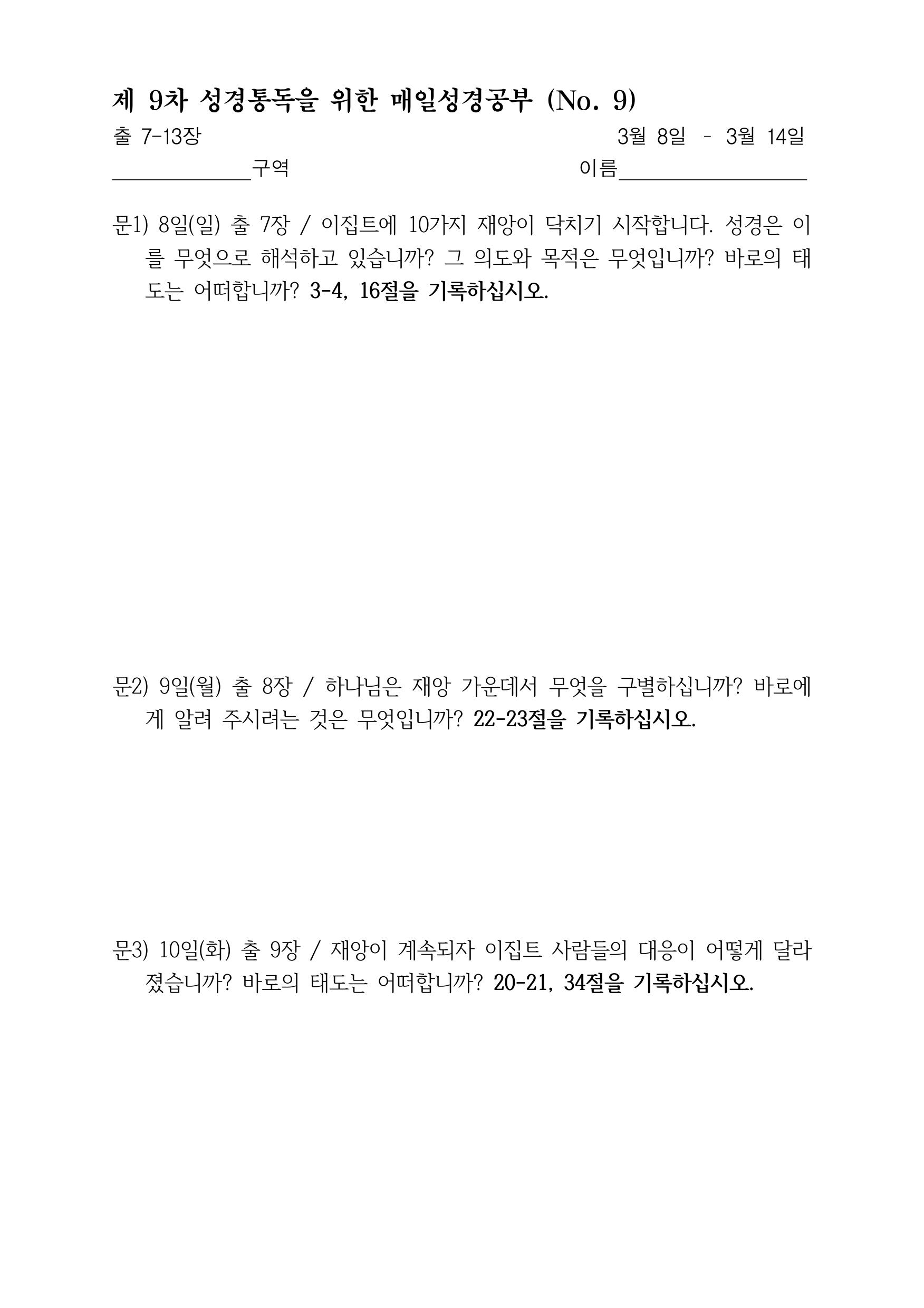 수요성경 글보기제목제 9차 성경통독을 위한 매일성경공부 (No.9)작성자bhanin 태그 목록 -제 9차 성경통독을 위한 매일성경공부 (No.9)bhanin 2026-03-15다음제 9차 성경통독을 위한 매일성경공부 (No.8)bhanin 2026-03-08 Powered by MangBoard | 워드프레스 쇼핑몰 망보드 글을 공유하세요