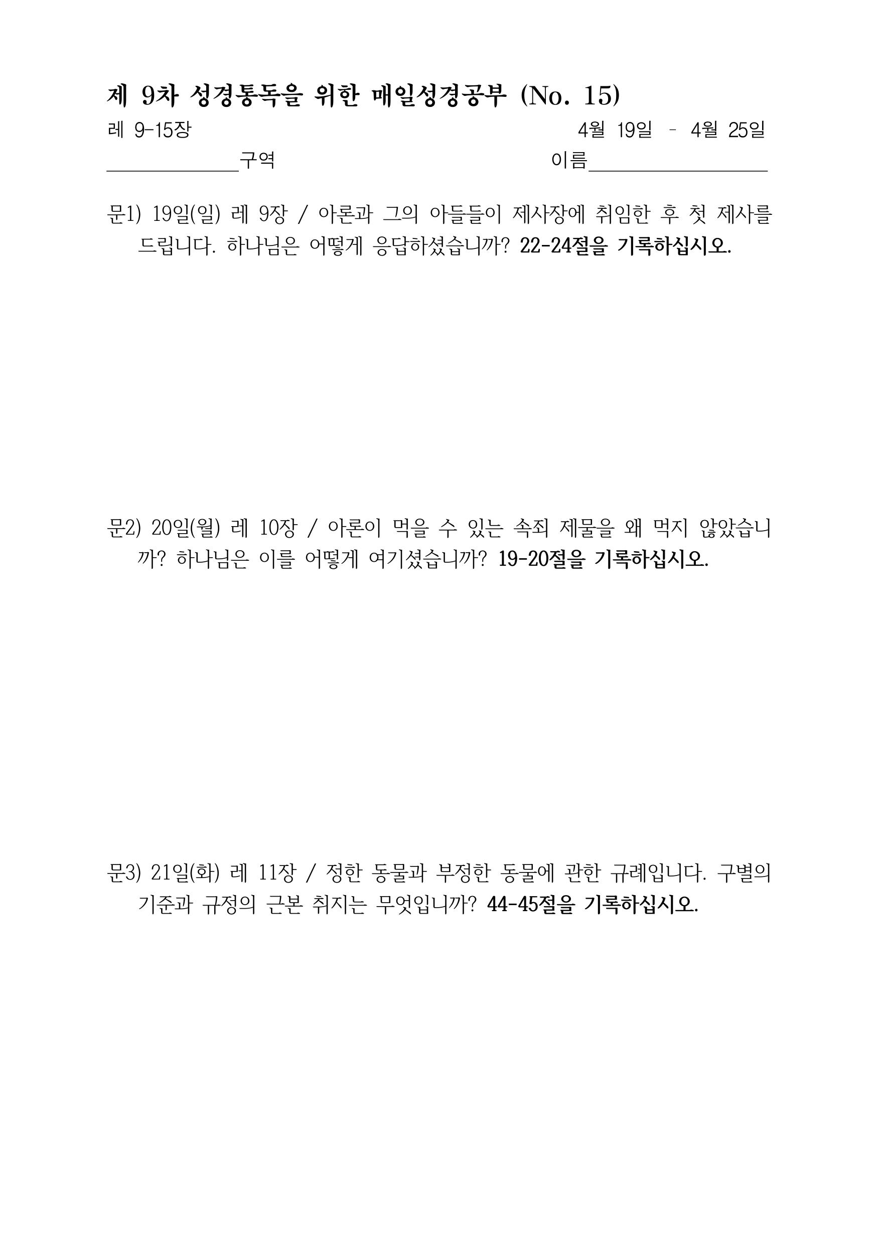수요성경 글보기제목제 9차 성경통독을 위한 매일성경공부 (No.15)작성자bhanin 태그 목록 -제 9차 성경통독을 위한 매일성경공부 (No.15)bhanin 2026-04-27다음제 9차 성경통독을 위한 매일성경공부 (No.14)bhanin 2026-04-21 Powered by MangBoard | 워드프레스 쇼핑몰 망보드 글을 공유하세요